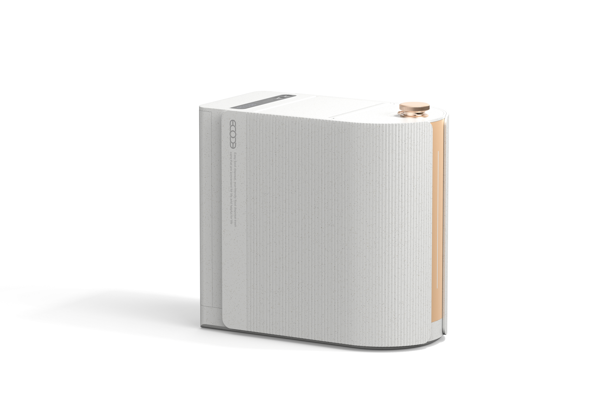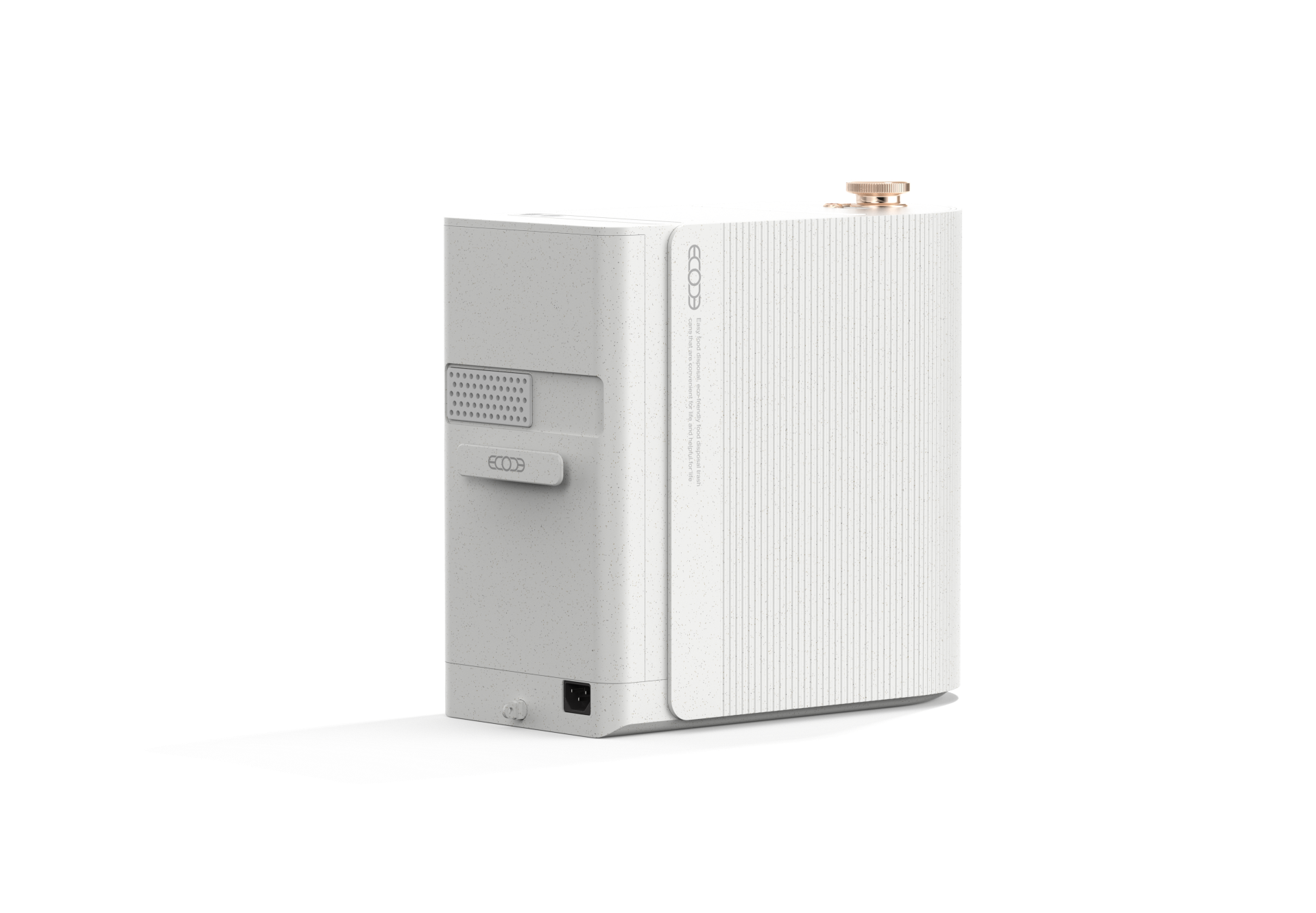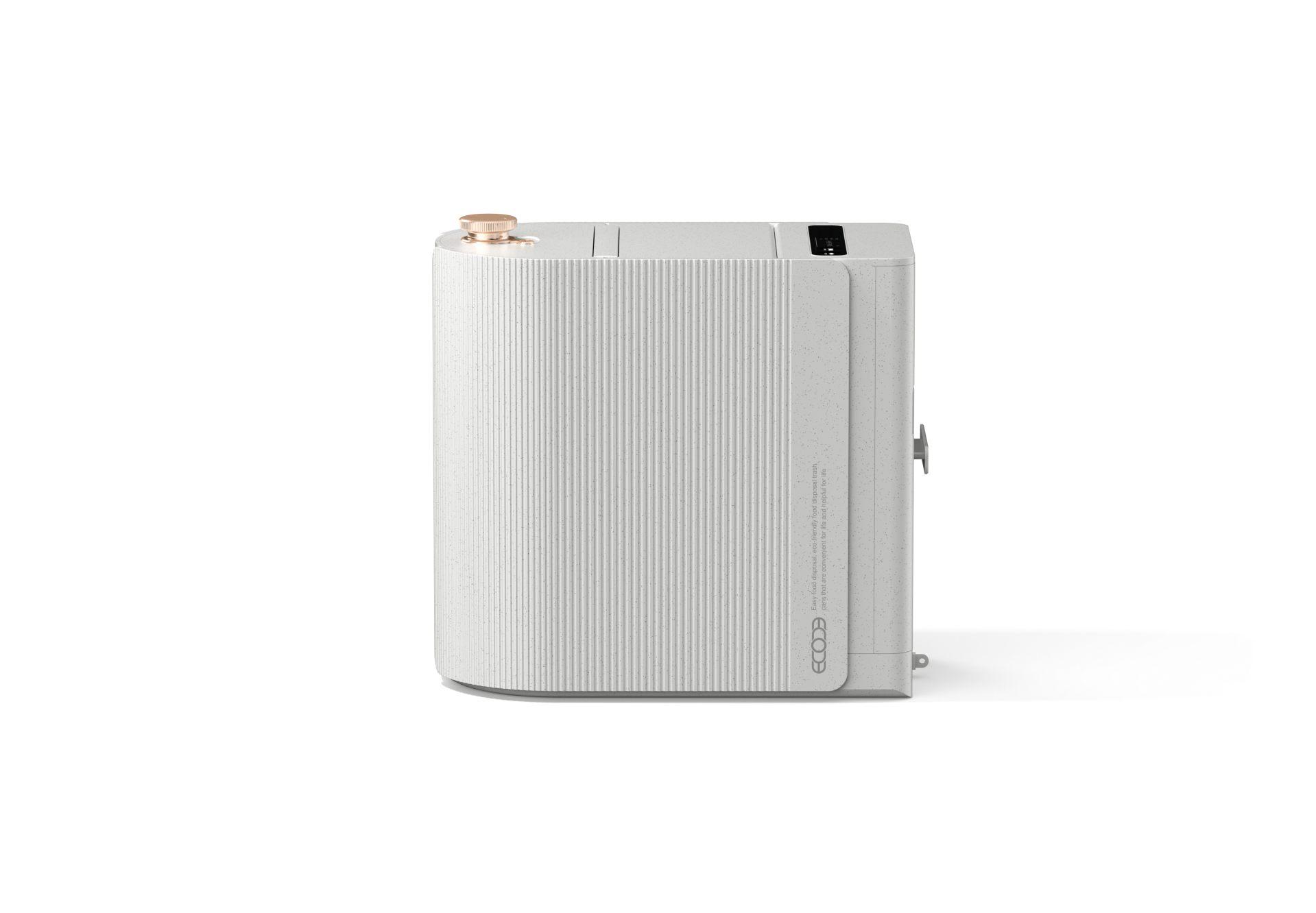 The Ecoche Mini features a sophisticated linear pattern that seamlessly integrates with modern interiors, redefining the food waste processor as a trendy home object. Its elegant Rose Gold accents deliver a sense of calm luxury, transforming a functional appliance into a high-end decorative element for the kitchen. By harmonizing minimalist structural lines with a premium color palette, the design achieves a perfect balance of aesthetic purity and contemporary style.