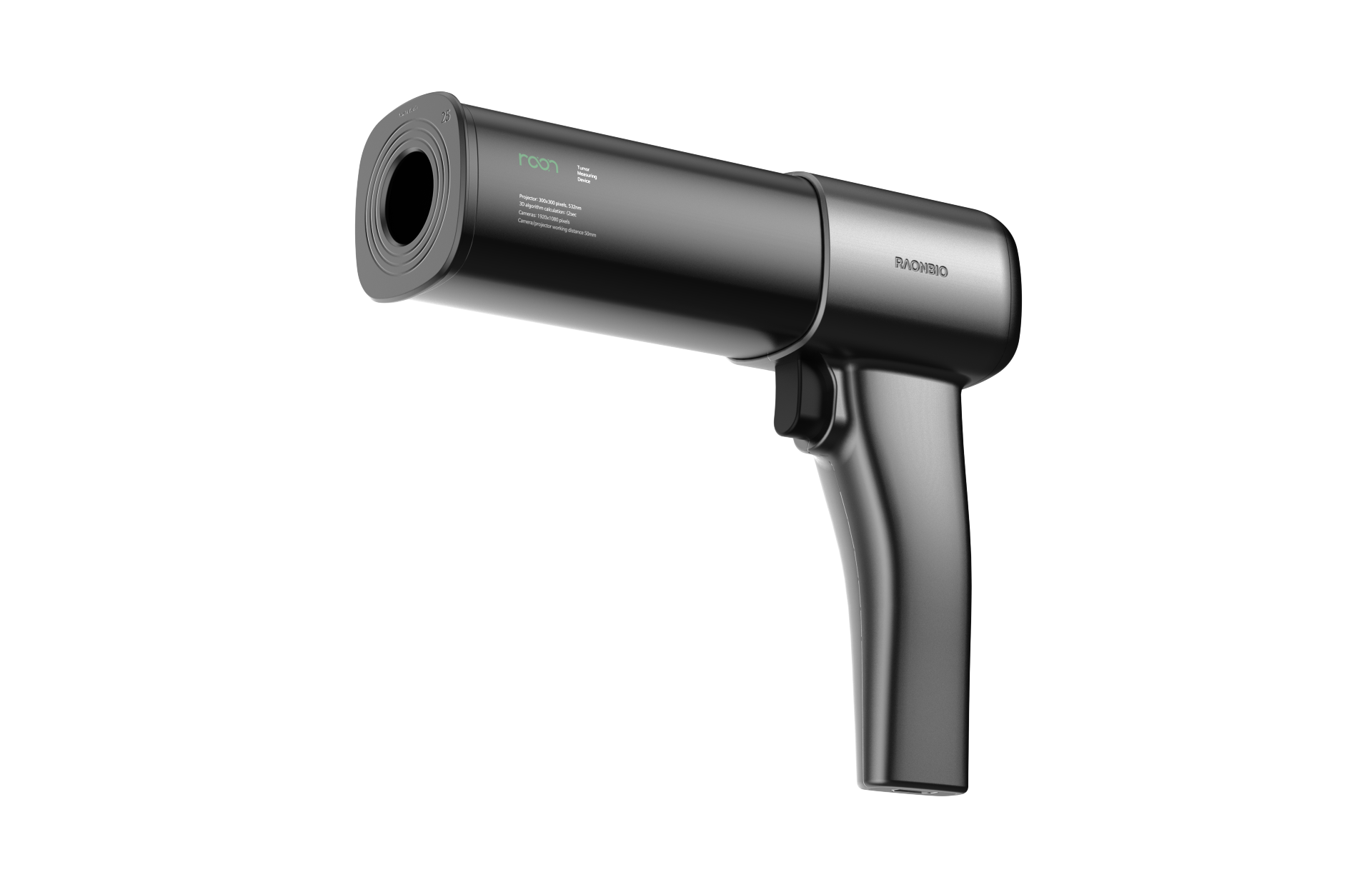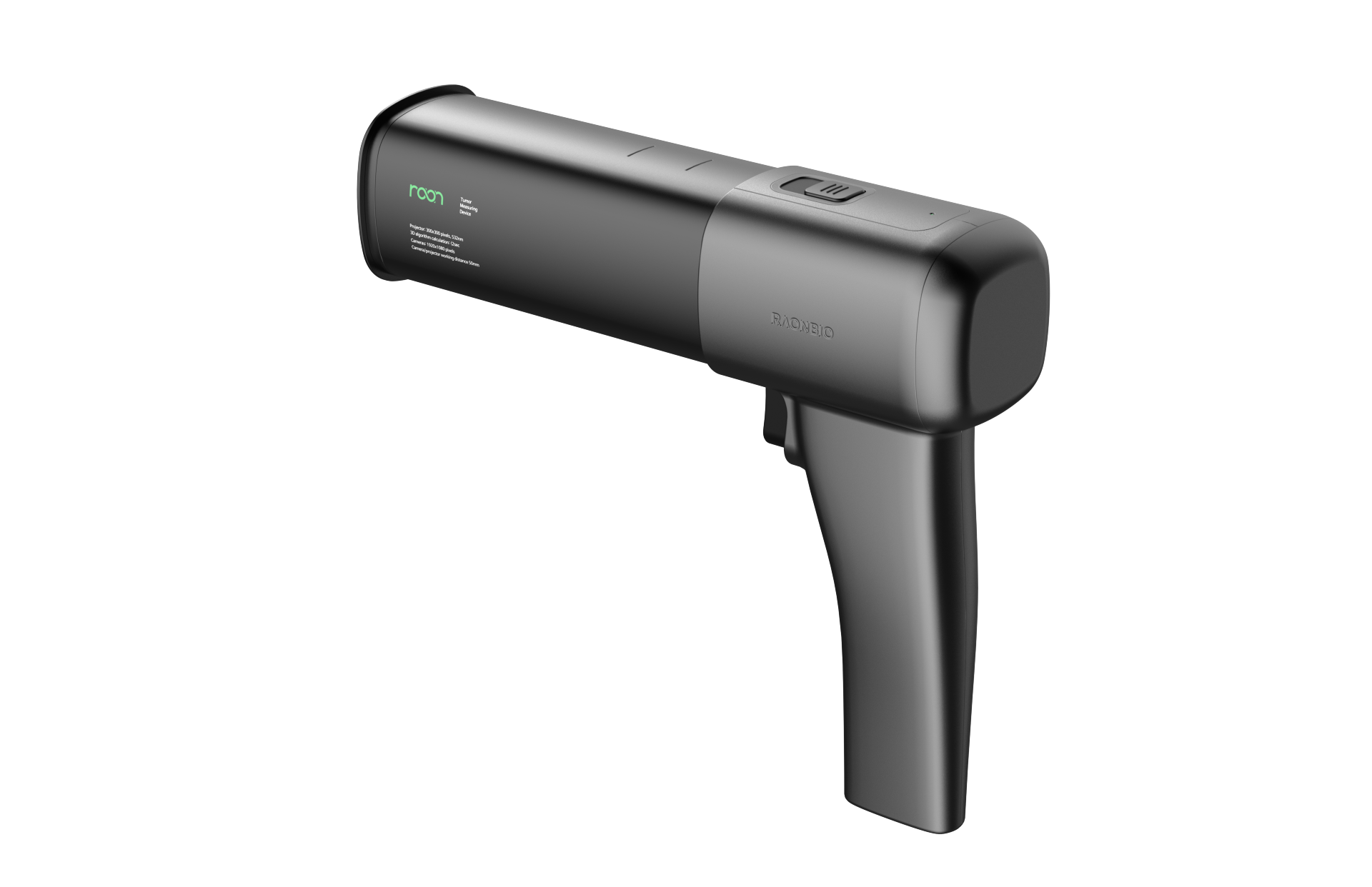 The tumor measurement device for Raon Bio features a clean, professional aesthetic that combines medical-grade precision with an intuitive user interface. Its ergonomically sculpted body is designed for a secure, stable grip, ensuring highly accurate and consistent data capture during critical diagnostic procedures. By harmonizing a minimalist white-and-silver palette with a sleek, seamless form, the design transforms a complex clinical tool into a trusted, high-tech solution for modern oncology.