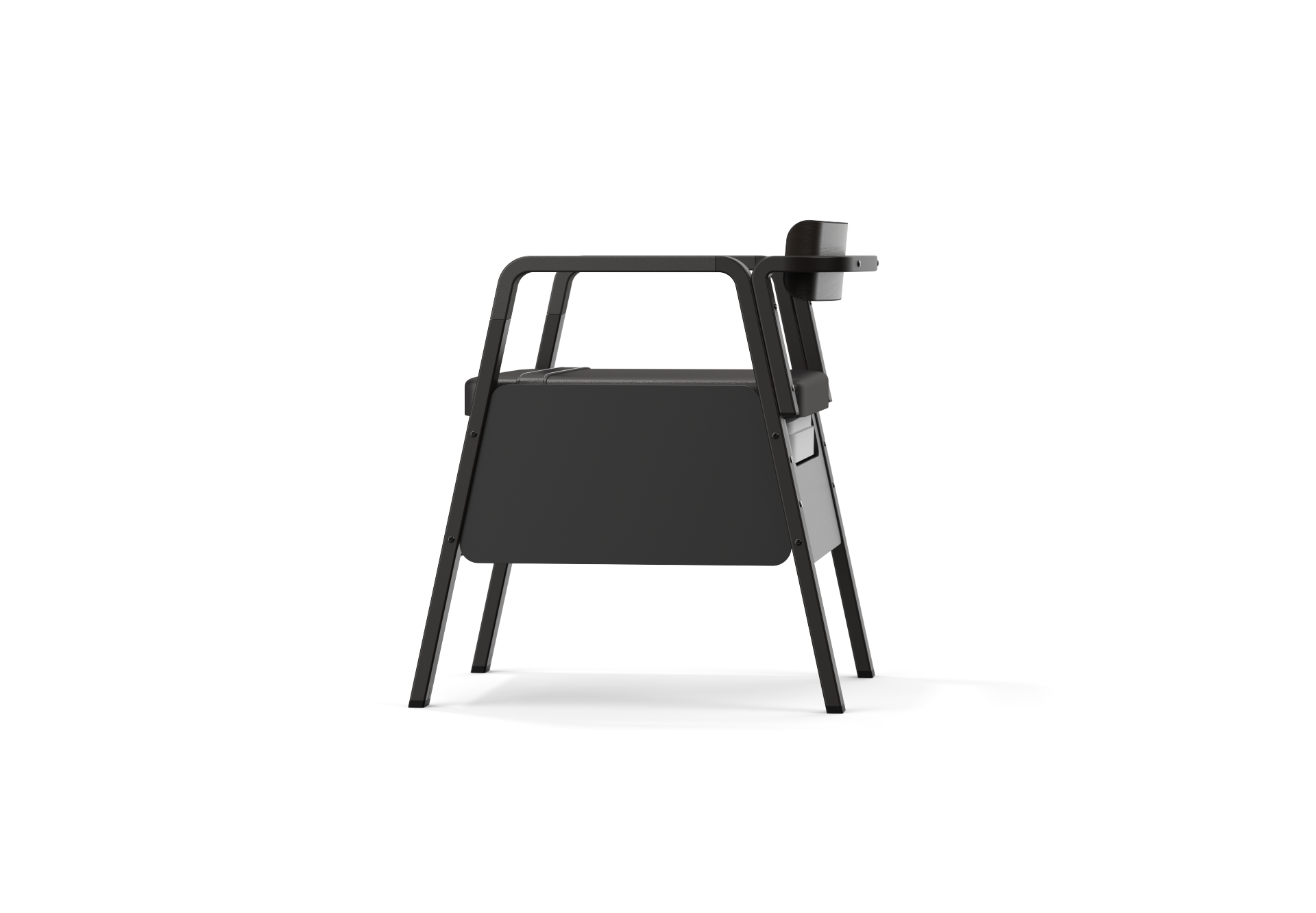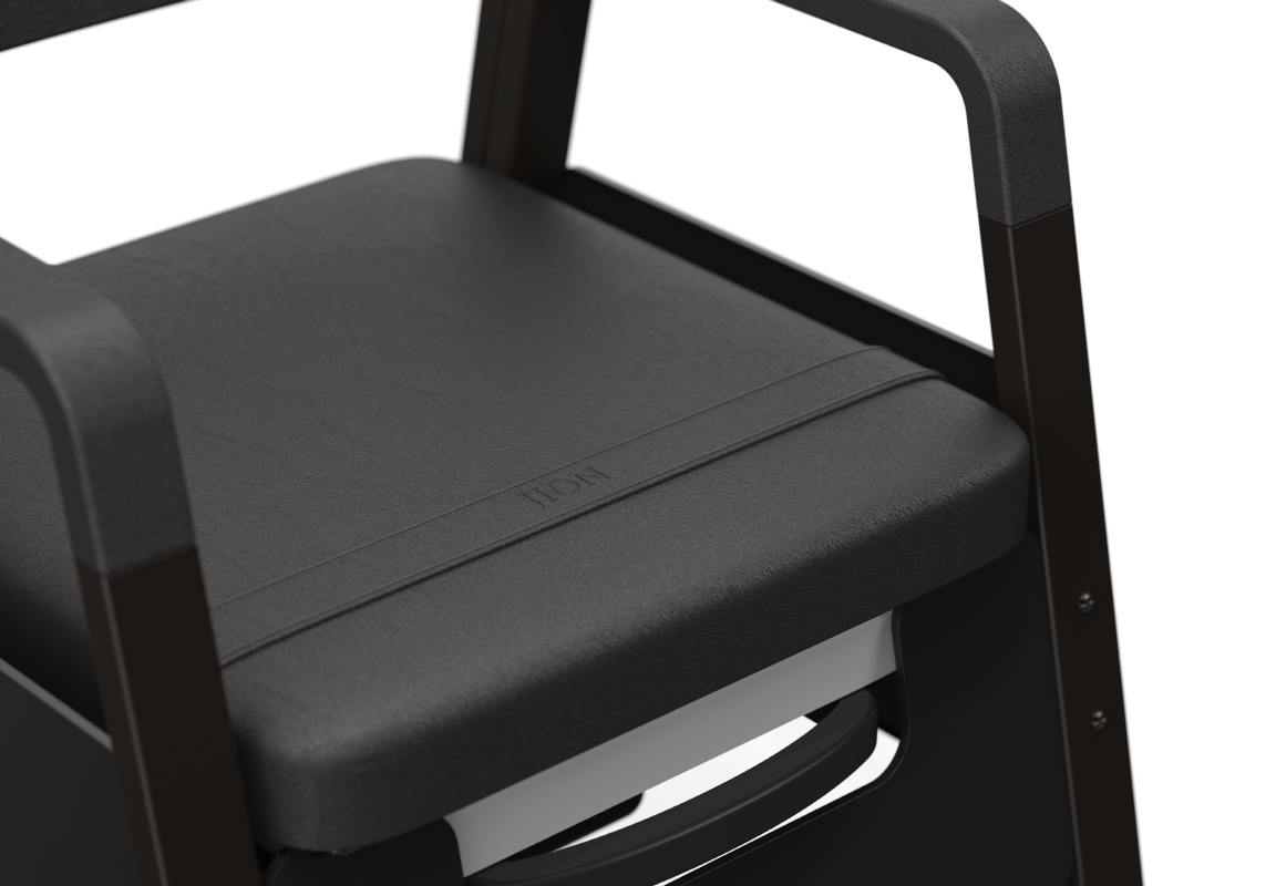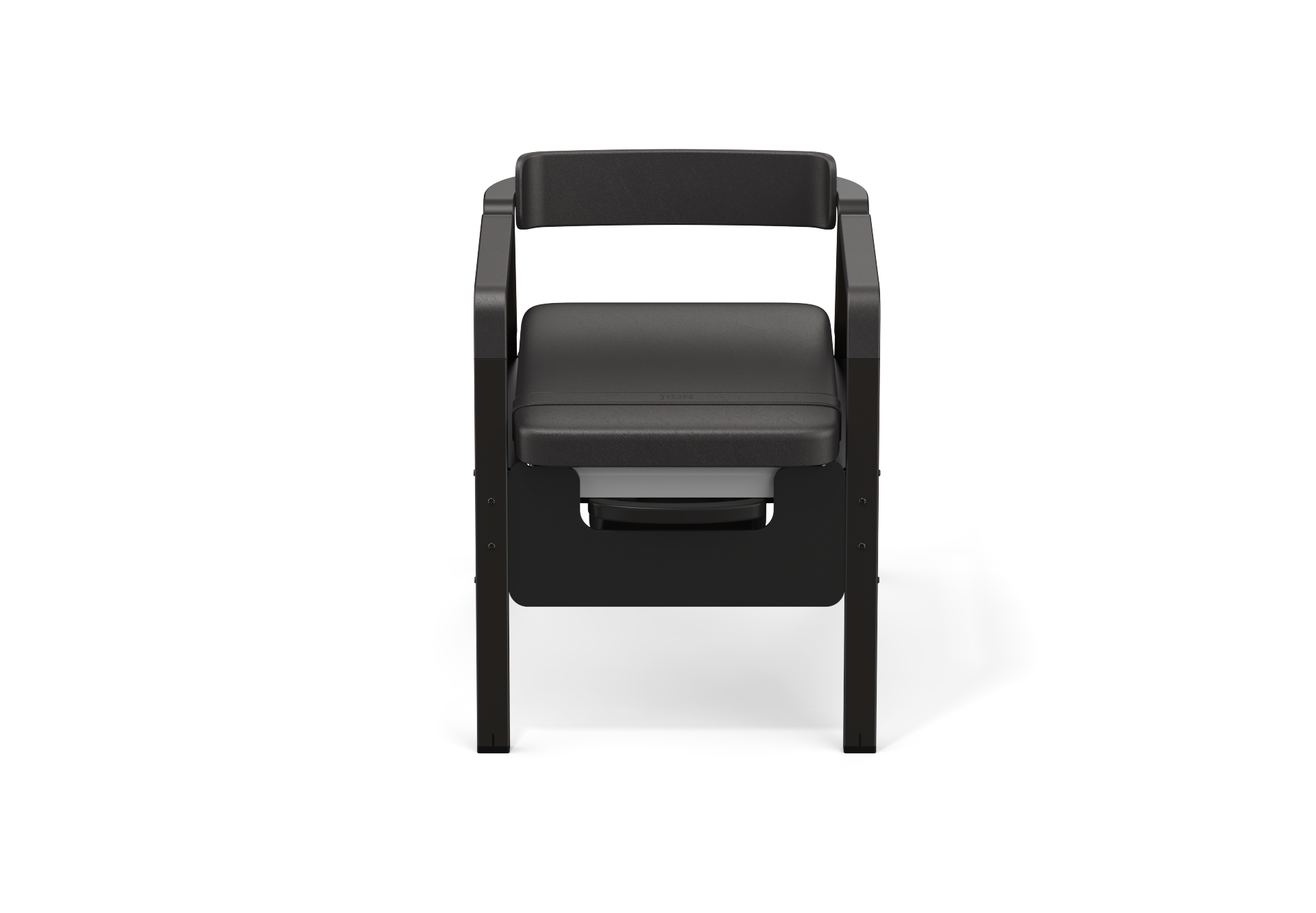The design redefines senior care with a sleek, trendy steel-frame silhouette that seamlessly blends the functionality of a mobile commode with the aesthetics of modern furniture. Its sophisticated matte black finish radiates a calm and premium presence, offering a dignified experience while ensuring robust structural stability. By harmonizing minimalist industrial lines with ergonomic support, this design transforms a medical necessity into a refined lifestyle object that respects both the user’s comfort and their interior space.