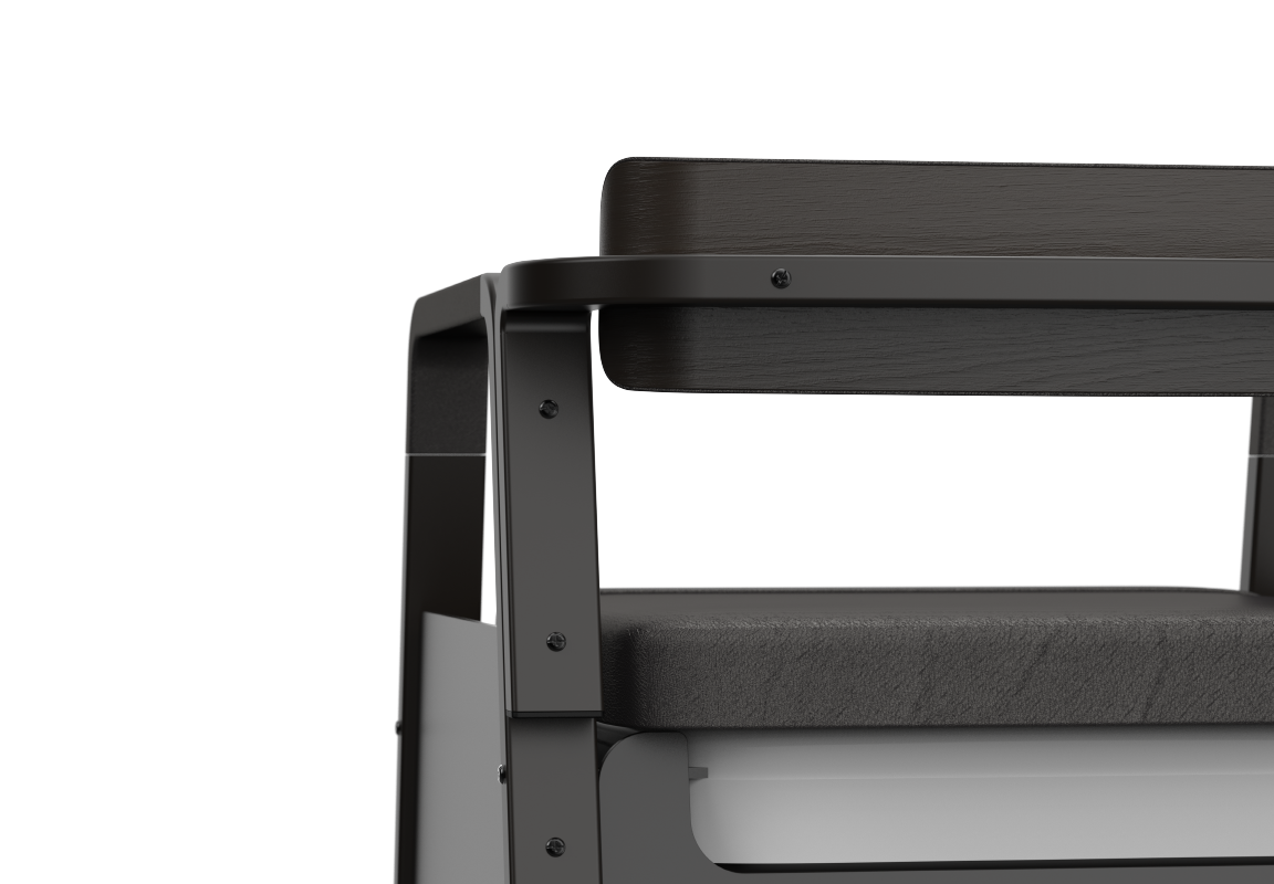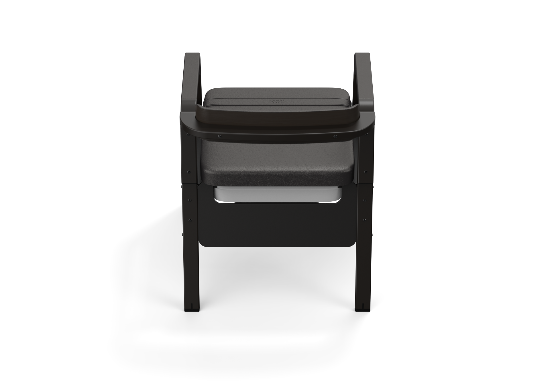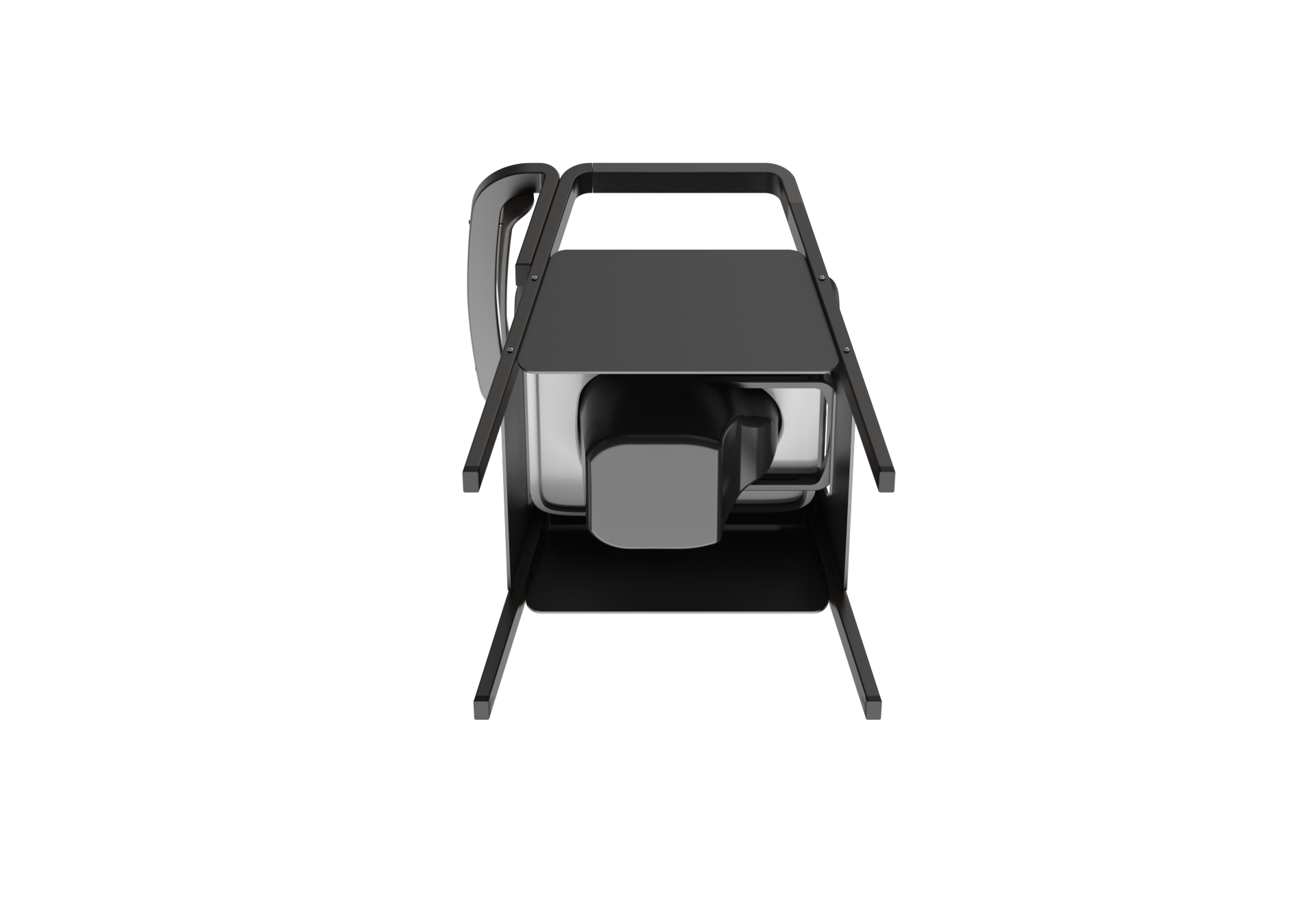 The design redefines senior care with a sleek, trendy steel-frame silhouette that seamlessly blends the functionality of a mobile commode with the aesthetics of modern furniture. Its sophisticated matte black finish radiates a calm and premium presence, offering a dignified experience while ensuring robust structural stability. By harmonizing minimalist industrial lines with ergonomic support, this design transforms a medical necessity into a refined lifestyle object that respects both the user’s comfort and their interior space.