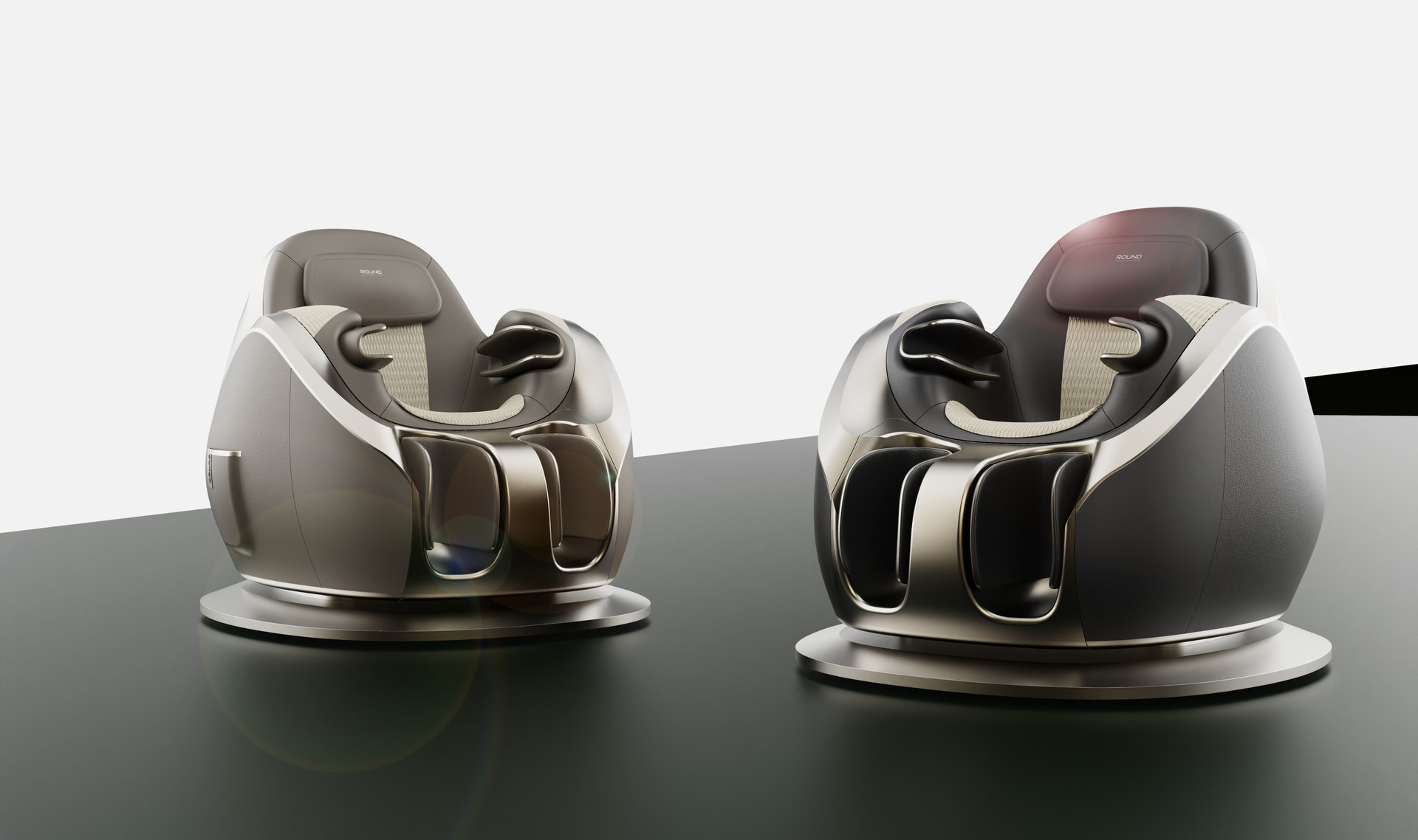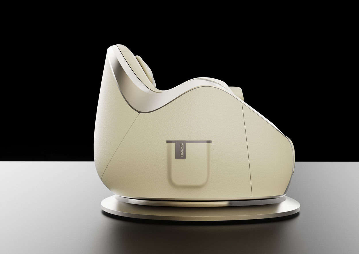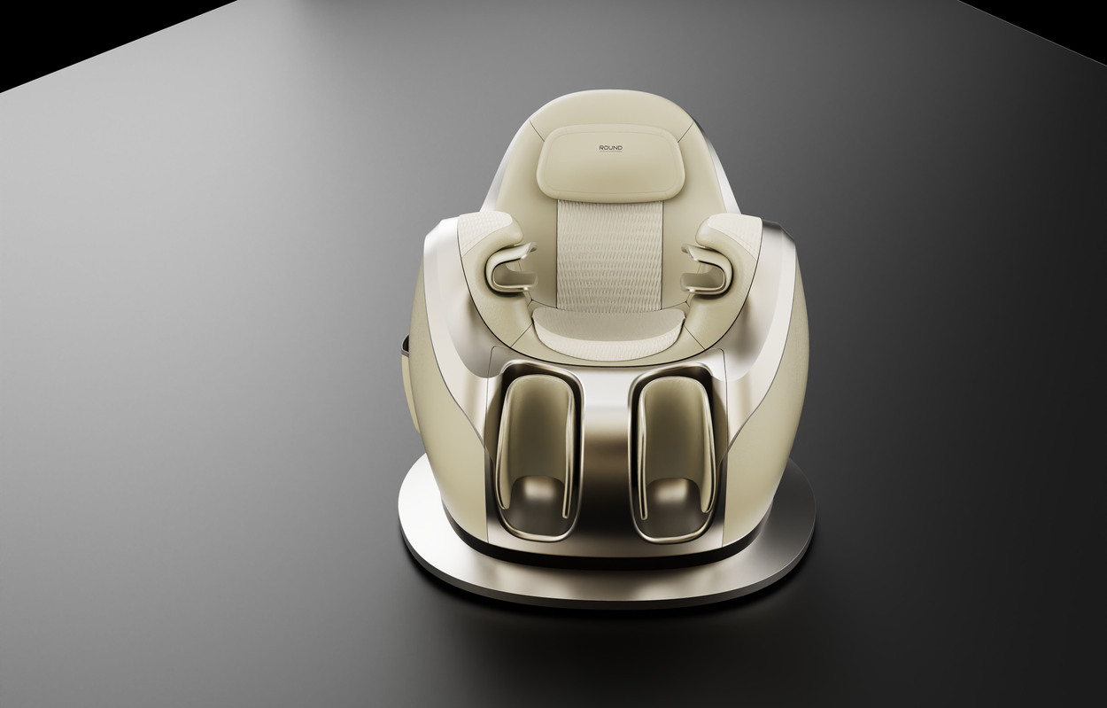 The design was developed with ergonomic curved lines that reflect the functional elements of a massage chair intended to relieve body line stress, delivering a sense of comfort and relaxation. A trendy deep green color scheme was applied to create a more refined, sophisticated, and premium line composition.
