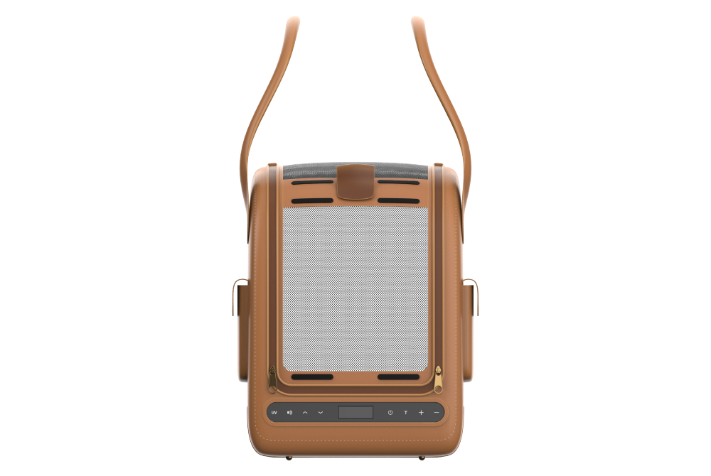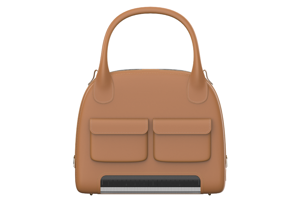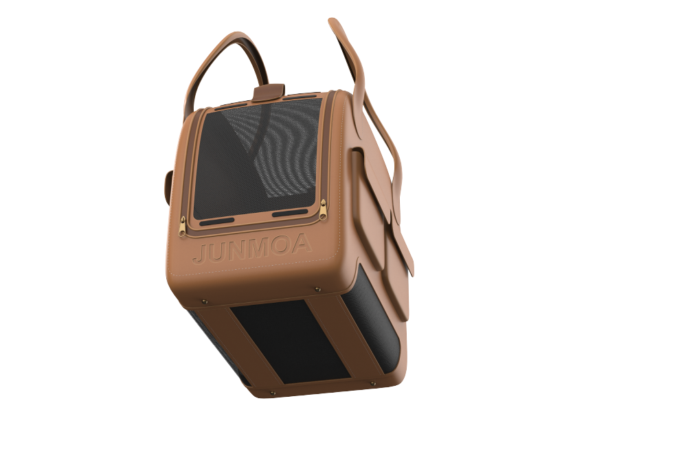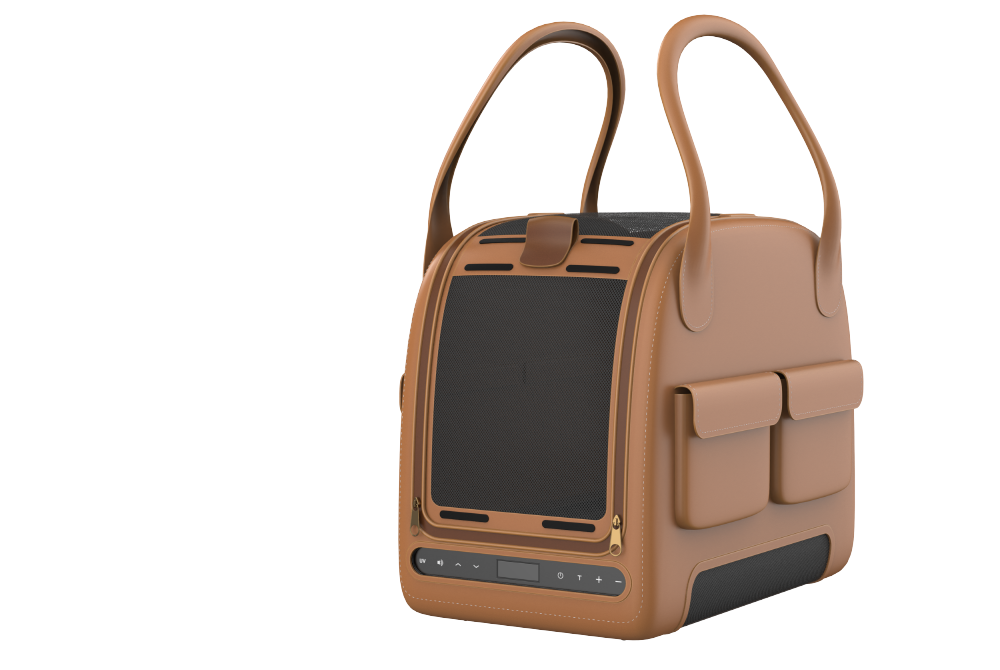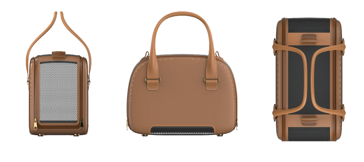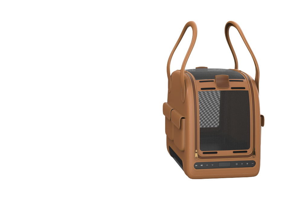 We developed a pet KD design for IoT products with cooling pads. We designed the entire cage considering the size of small dogs, and produced it with leather material according to the customer's request. It is composed of a luxurious look with stitched finishing lines and brown leather color, and a pocket on the side is organized as a design point element to store pet supplies and snacks.