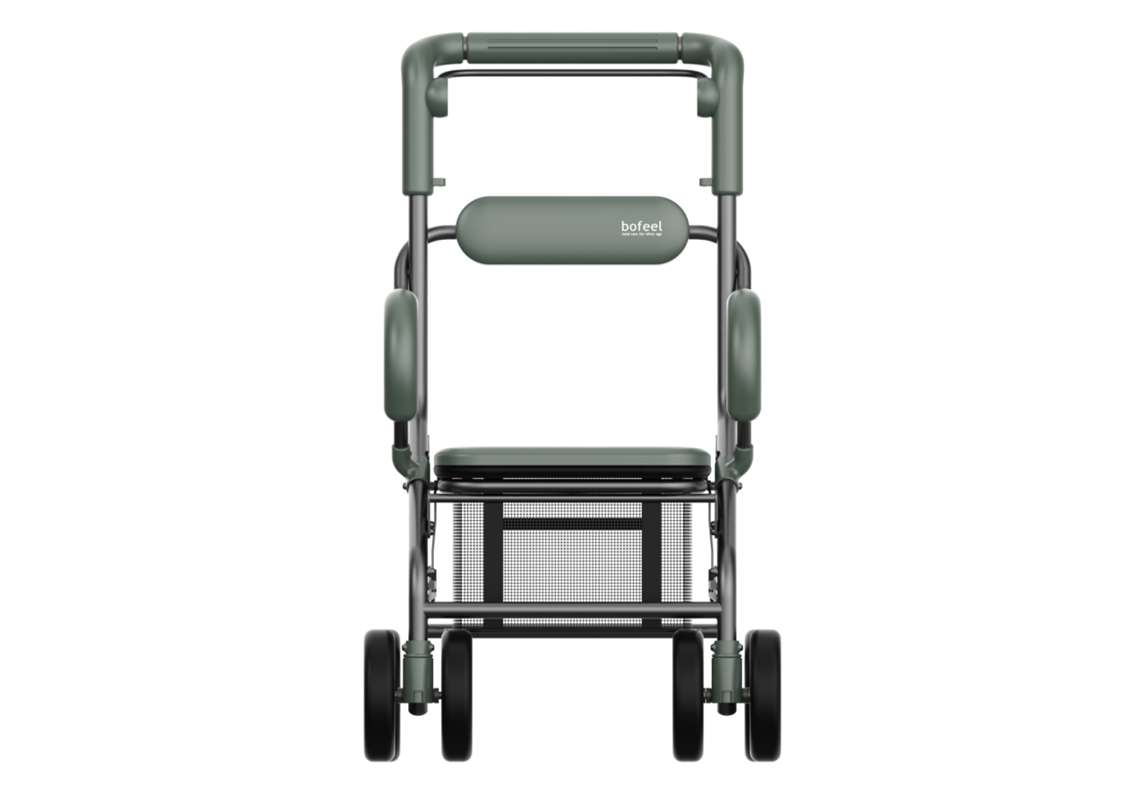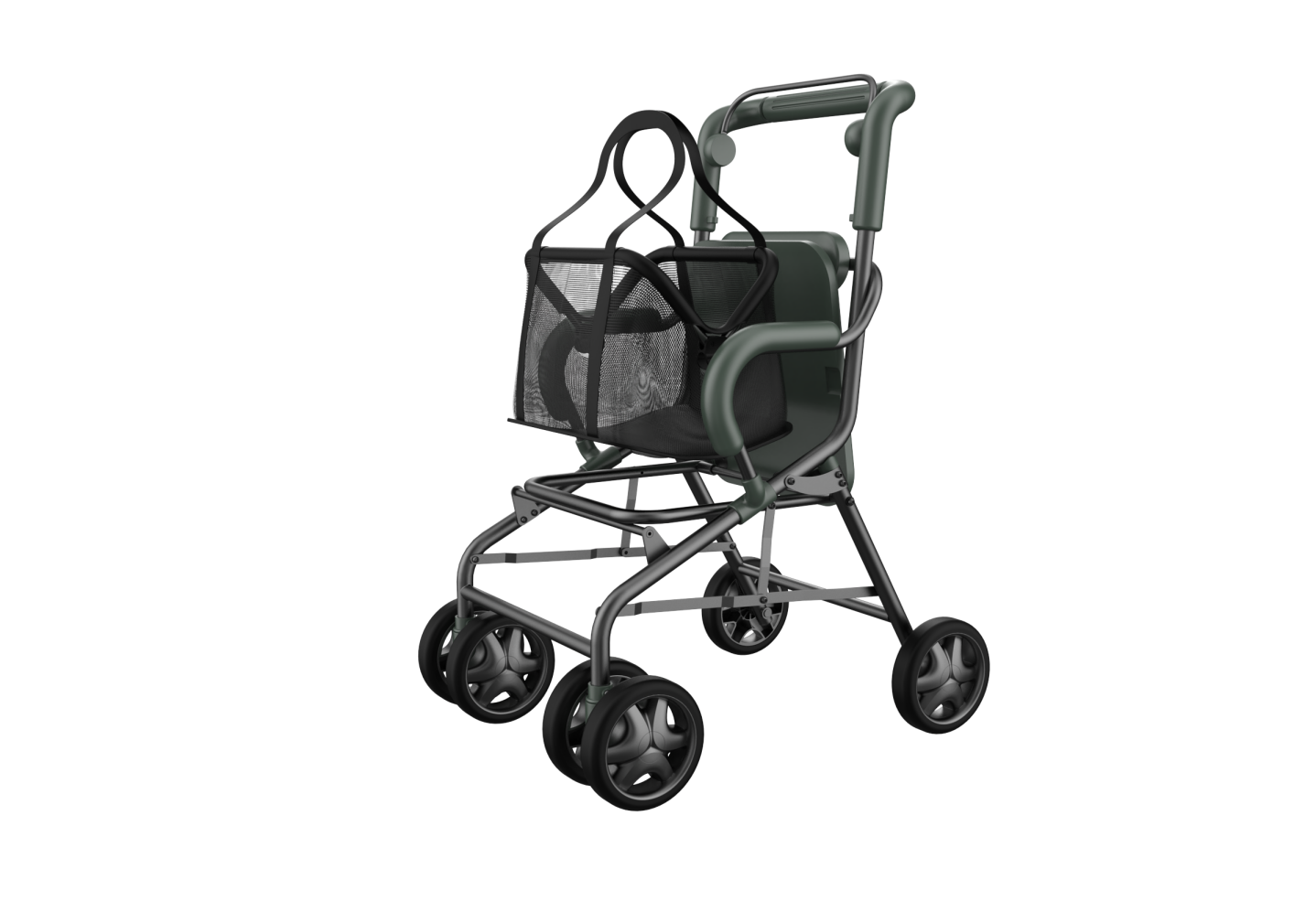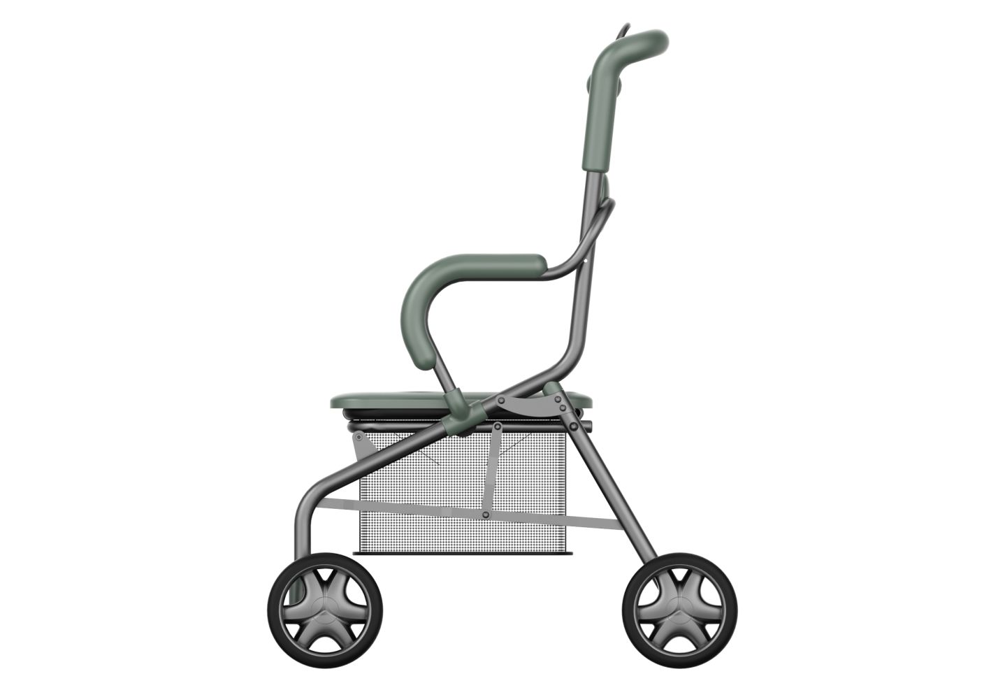 We have carried out a popular design for the Silver Walker. Considering the usability of people with limited mobility, we have set the overall size ratio and designed it with rounded volume lines so that you can sit and stand up comfortably. The low-saturation green color has been used to create a luxurious feel for the product, and the wheel line has been simplified to suggest it as a design point element.