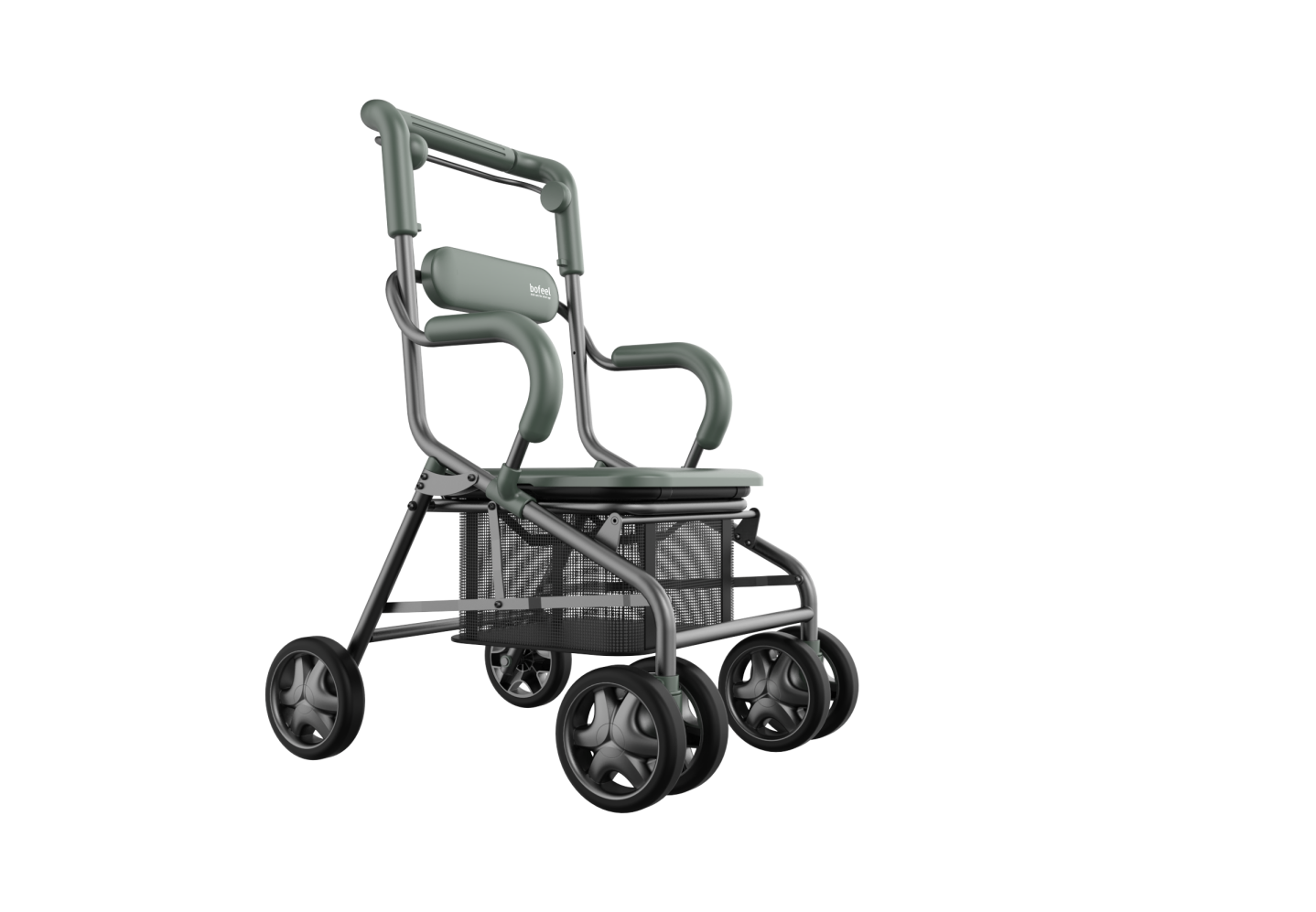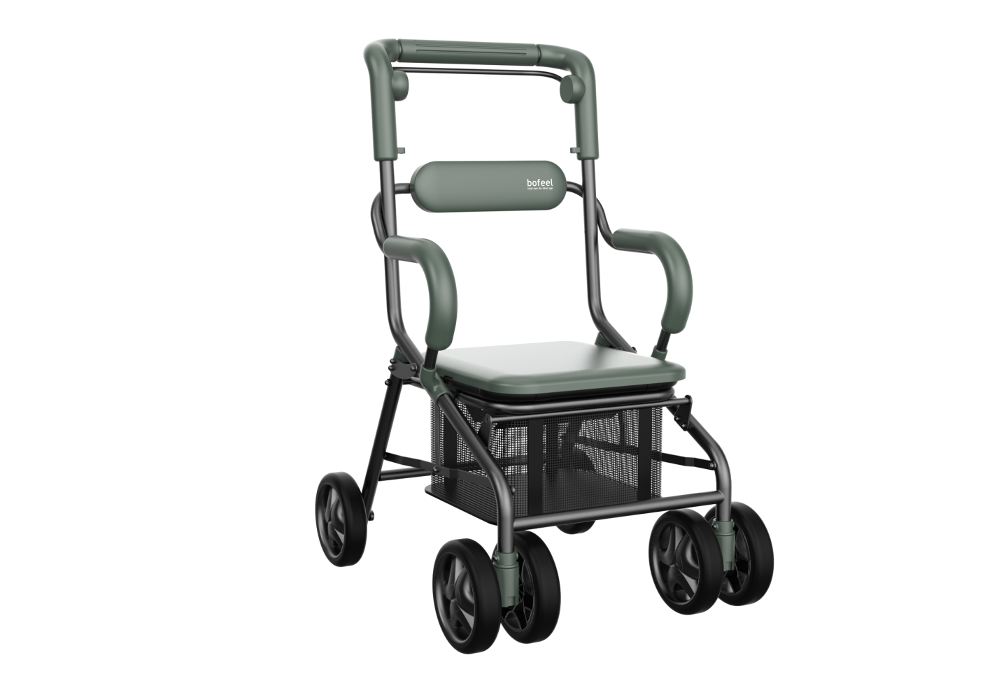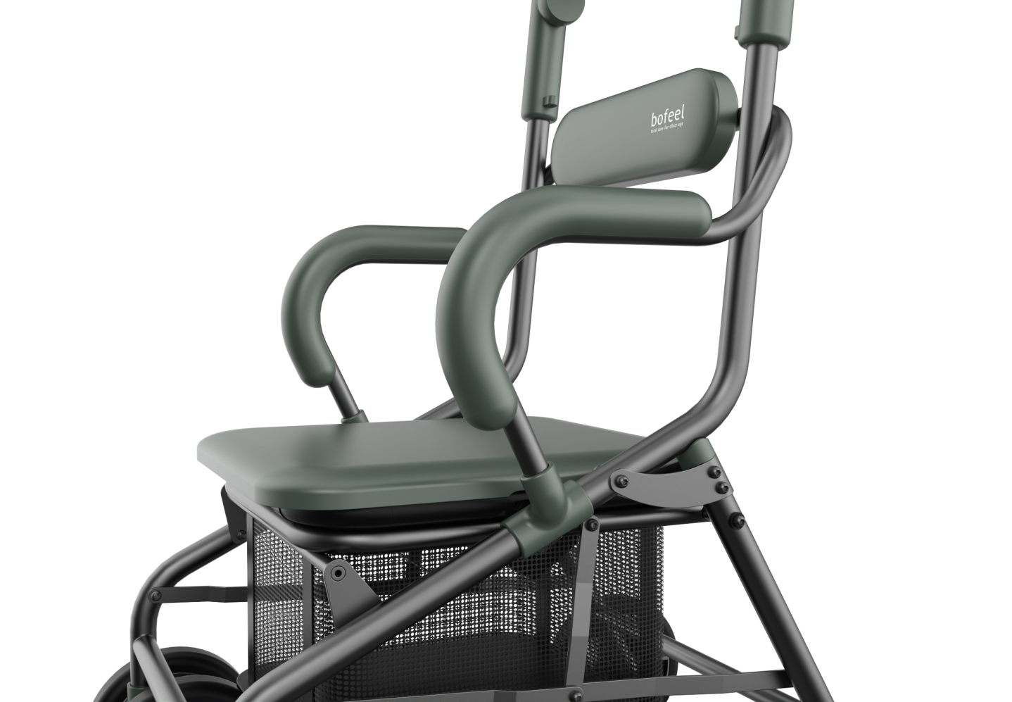 We have carried out a popular design for the Silver Walker. Considering the usability of people with limited mobility, we have set the overall size ratio and designed it with rounded volume lines so that you can sit and stand up comfortably. The low-saturation green color has been used to create a luxurious feel for the product, and the wheel line has been simplified to suggest it as a design point element.